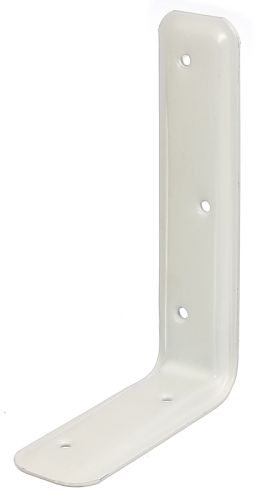Stützwinkel, geprägt, mit versenkten Schraublöchern, Material: Stahl roh, Oberfläche: zinkphosphatiert, weiß kunststoffbeschichtet, Tiefe: 100 mm, Höhe: 160 mm, Breite: 40 mm, Materialstärke: 2,00 mm, Befestigungsart: zum Aufschrauben, Anzahl Löcher: 5, Loch: Ø4,5 mm