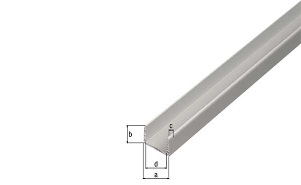 U-Profil, selbstklemmend, Material: Aluminium, Oberfläche: silberfarbig eloxiert, Breite: 15,9 mm, Höhe: 15 mm, Materialstärke: 1,5 mm, lichte Breite: 12,9 mm, Länge: 1000 mm