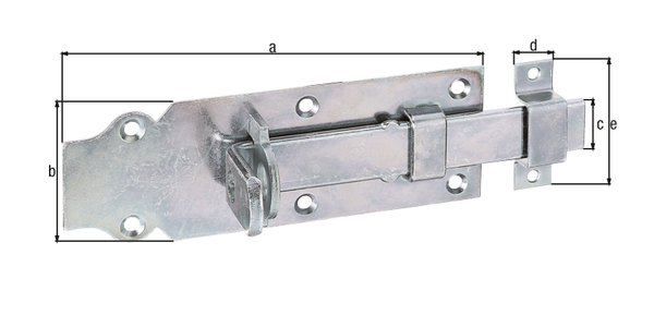 Alberts Schlossriegel mit flachem Griff: Stahl roh, galvanisch verzinkt, Dickschichtschutz, Ausführung: gerade, mit befestigter Schlaufe 116781