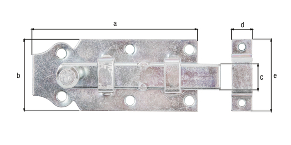 Alberts Türriegel mit Knopfgriff: Stahl roh, galvanisch verzinkt, Dickschichtschutz, Ausführung: gerade, mit befestigter Schlaufe 100x44 115388