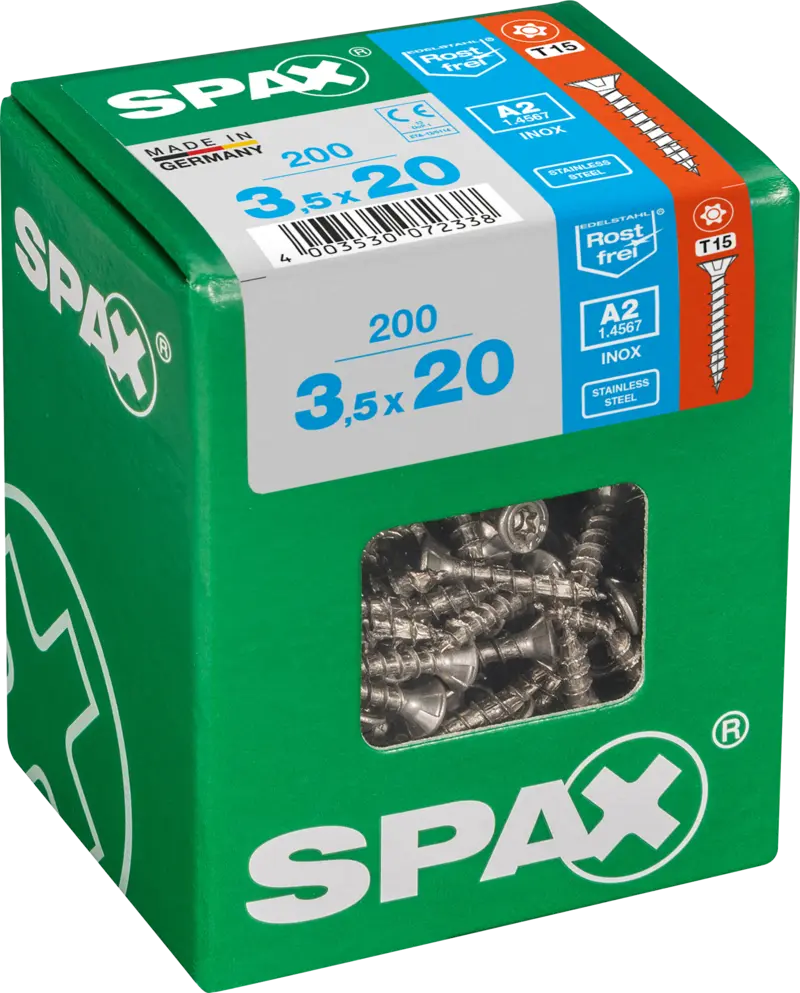 - Die SPAX Edelstahl rostfrei bietet Sicherheit gegen Korrosion!