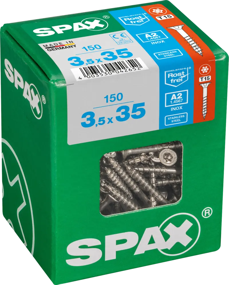- Die SPAX Edelstahl rostfrei bietet Sicherheit gegen Korrosion!