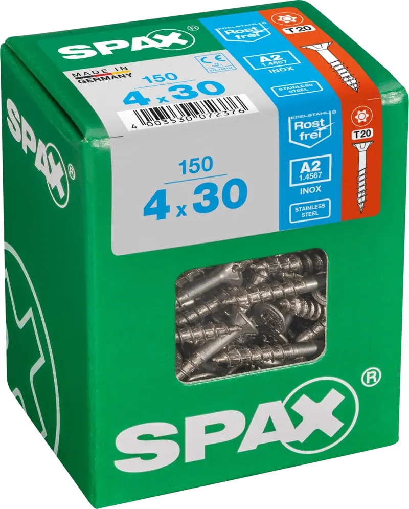 - Die SPAX Edelstahl rostfrei bietet Sicherheit gegen Korrosion!