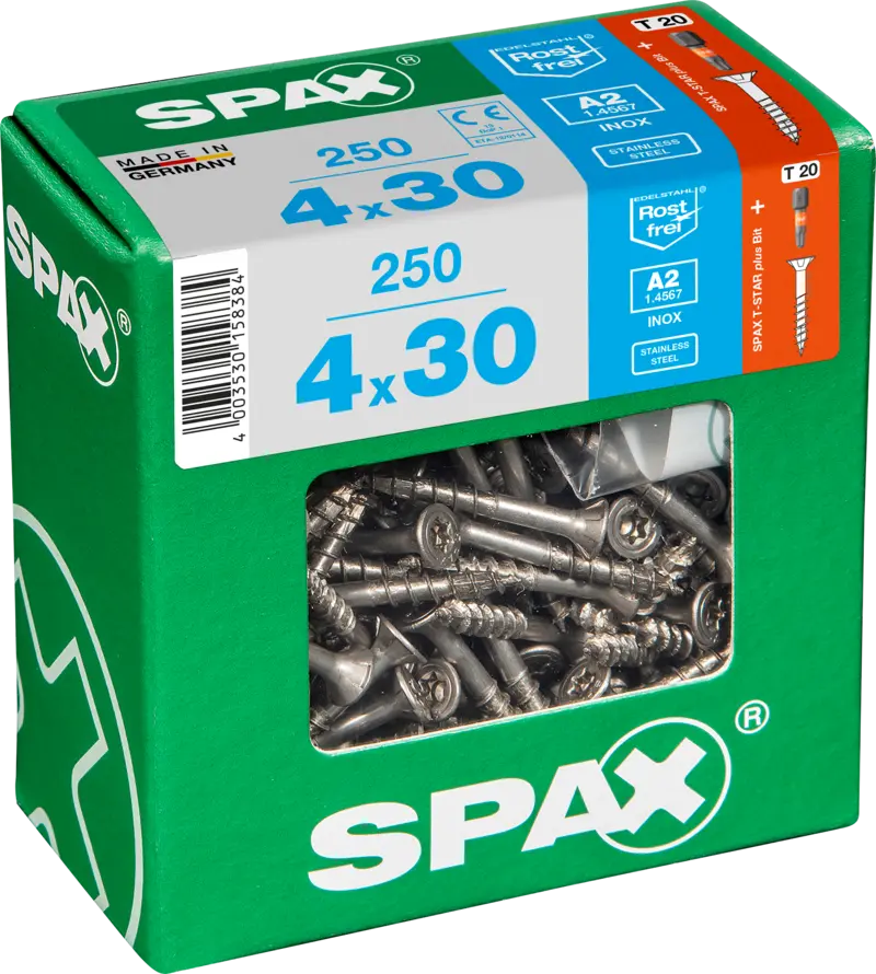 - Die SPAX Edelstahl rostfrei bietet Sicherheit gegen Korrosion!