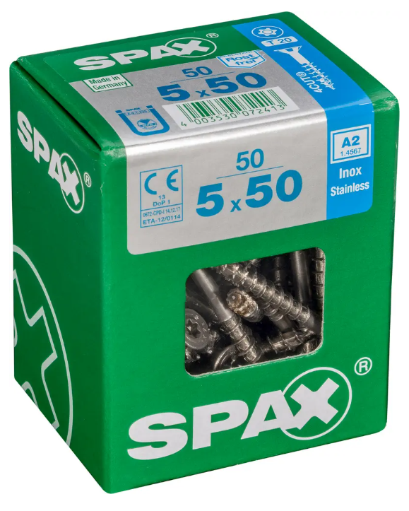 - Die SPAX Edelstahl rostfrei bietet Sicherheit gegen Korrosion!