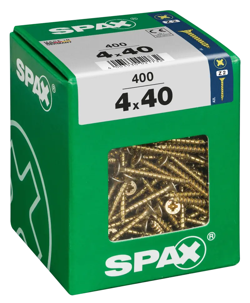 Die Universalschraube ist der absolute Allrounder im Sortiment von SPAX. Sie kann fast alles – zum Beispiel ganz ohne Vorbohren in Nadelhölzer wie Fichten- und Kiefernholz sowie in die gängigen Holzwerkstoffplatten (MDF, Span- und OSB-Platten) eingedreht werden. Dabei spielt unsere Universalschraube ihre Überlegenheit vor allem im Innenausbau- und Möbelbaubereich aus, aber auch außen ist sie mit dem passenden Korrosionsschutz gut verwendbar. Durch ihre besondere Gewindegeometrie ist der Eindrehwiderstand beim Schrauben wesentlich geringer als bei herkömmlichen Schrauben, was nicht nur Ihre Kräfte und Nerven, sondern auch den Akku des eingesetzten Schraubers schont. Ein Aufspleißen des Holzes in Randnähe wird zuverlässig unterbunden. Das bedeutet für Sie: Sie drehen mehr Schrauben pro Akkuladung ein, und Sie müssen sich keine Sorgen um aufgerissene Holzenden mehr machen.