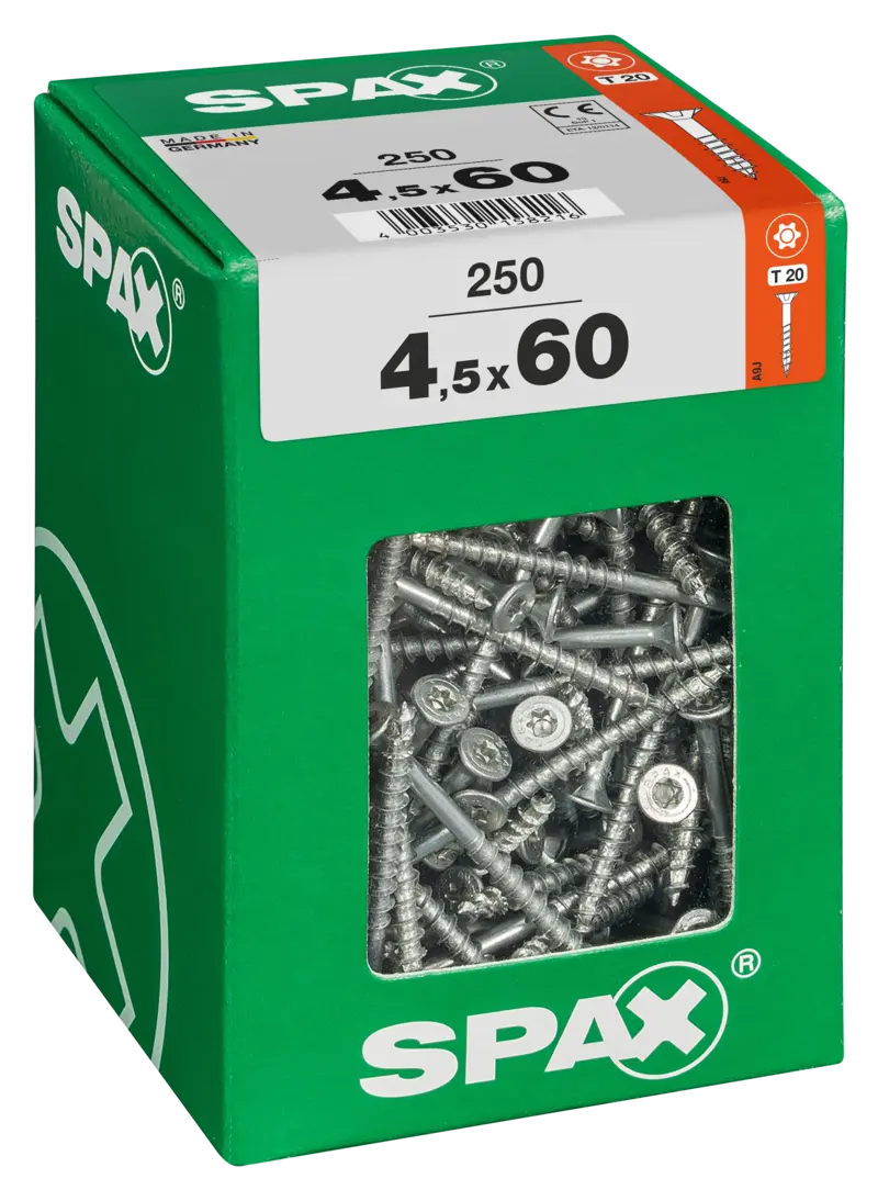 Die Universalschraube ist der absolute Allrounder im Sortiment von SPAX. Sie kann fast alles – zum Beispiel ganz ohne Vorbohren in Nadelhölzer wie Fichten- und Kiefernholz sowie in die gängigen Holzwerkstoffplatten (MDF, Span- und OSB-Platten) eingedreht werden. Dabei spielt unsere Universalschraube ihre Überlegenheit vor allem im Innenausbau- und Möbelbaubereich aus, aber auch außen ist sie mit dem passenden Korrosionsschutz gut verwendbar. Durch ihre besondere Gewindegeometrie ist der Eindrehwiderstand beim Schrauben wesentlich geringer als bei herkömmlichen Schrauben, was nicht nur Ihre Kräfte und Nerven, sondern auch den Akku des eingesetzten Schraubers schont. Ein Aufspleißen des Holzes in Randnähe wird zuverlässig unterbunden. Das bedeutet für Sie: Sie drehen mehr Schrauben pro Akkuladung ein, und Sie müssen sich keine Sorgen um aufgerissene Holzenden mehr machen.