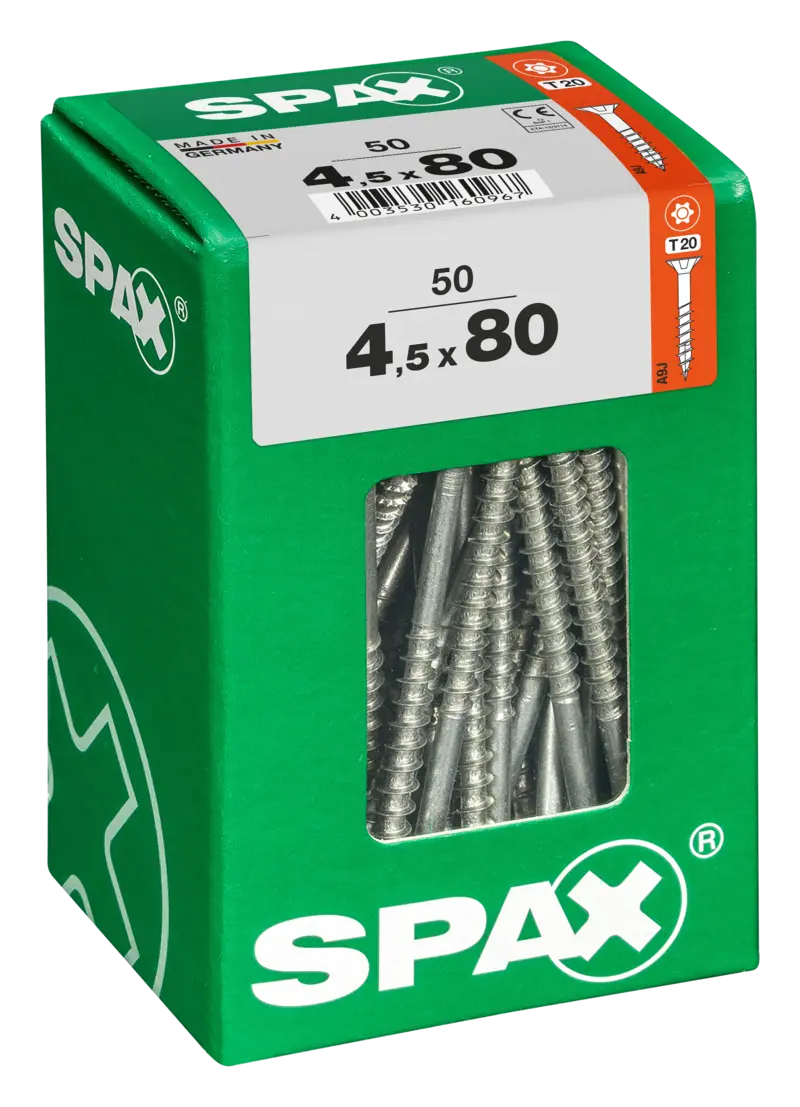 Die Universalschraube ist der absolute Allrounder im Sortiment von SPAX. Sie kann fast alles – zum Beispiel ganz ohne Vorbohren in Nadelhölzer wie Fichten- und Kiefernholz sowie in die gängigen Holzwerkstoffplatten (MDF, Span- und OSB-Platten) eingedreht werden. Dabei spielt unsere Universalschraube ihre Überlegenheit vor allem im Innenausbau- und Möbelbaubereich aus, aber auch außen ist sie mit dem passenden Korrosionsschutz gut verwendbar. Durch ihre besondere Gewindegeometrie ist der Eindrehwiderstand beim Schrauben wesentlich geringer als bei herkömmlichen Schrauben, was nicht nur Ihre Kräfte und Nerven, sondern auch den Akku des eingesetzten Schraubers schont. Ein Aufspleißen des Holzes in Randnähe wird zuverlässig unterbunden. Das bedeutet für Sie: Sie drehen mehr Schrauben pro Akkuladung ein, und Sie müssen sich keine Sorgen um aufgerissene Holzenden mehr machen.