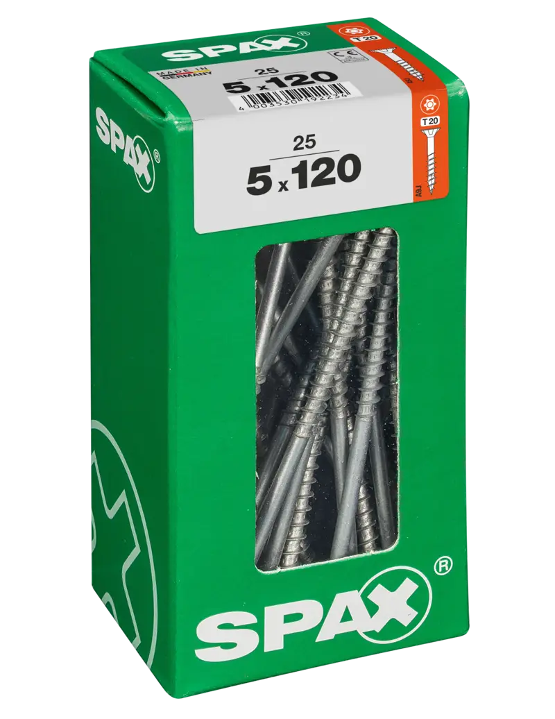 SPAX Universalschraube, 5 x 120 mm, 25 Stück, Teilgewinde, Senkkopf, T-STAR plus T20, 4CUT, WIROX, 4191010501207