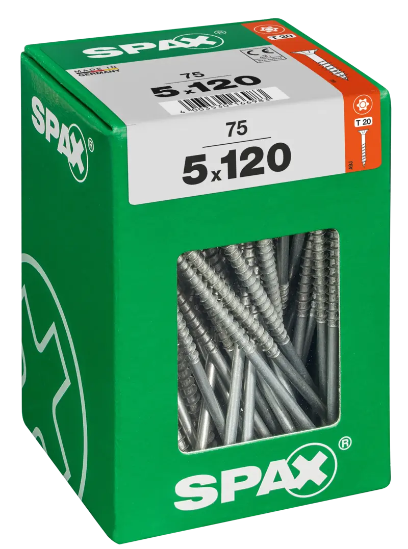 Die Universalschraube ist der absolute Allrounder im Sortiment von SPAX. Sie kann fast alles – zum Beispiel ganz ohne Vorbohren in Nadelhölzer wie Fichten- und Kiefernholz sowie in die gängigen Holzwerkstoffplatten (MDF, Span- und OSB-Platten) eingedreht werden. Dabei spielt unsere Universalschraube ihre Überlegenheit vor allem im Innenausbau- und Möbelbaubereich aus, aber auch außen ist sie mit dem passenden Korrosionsschutz gut verwendbar. Durch ihre besondere Gewindegeometrie ist der Eindrehwiderstand beim Schrauben wesentlich geringer als bei herkömmlichen Schrauben, was nicht nur Ihre Kräfte und Nerven, sondern auch den Akku des eingesetzten Schraubers schont. Ein Aufspleißen des Holzes in Randnähe wird zuverlässig unterbunden. Das bedeutet für Sie: Sie drehen mehr Schrauben pro Akkuladung ein, und Sie müssen sich keine Sorgen um aufgerissene Holzenden mehr machen.