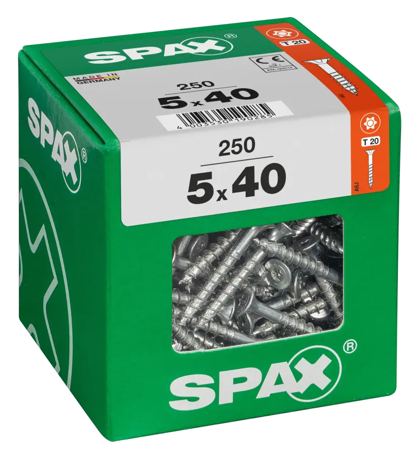 Die Universalschraube ist der absolute Allrounder im Sortiment von SPAX. Sie kann fast alles – zum Beispiel ganz ohne Vorbohren in Nadelhölzer wie Fichten- und Kiefernholz sowie in die gängigen Holzwerkstoffplatten (MDF, Span- und OSB-Platten) eingedreht werden. Dabei spielt unsere Universalschraube ihre Überlegenheit vor allem im Innenausbau- und Möbelbaubereich aus, aber auch außen ist sie mit dem passenden Korrosionsschutz gut verwendbar. Durch ihre besondere Gewindegeometrie ist der Eindrehwiderstand beim Schrauben wesentlich geringer als bei herkömmlichen Schrauben, was nicht nur Ihre Kräfte und Nerven, sondern auch den Akku des eingesetzten Schraubers schont. Ein Aufspleißen des Holzes in Randnähe wird zuverlässig unterbunden. Das bedeutet für Sie: Sie drehen mehr Schrauben pro Akkuladung ein, und Sie müssen sich keine Sorgen um aufgerissene Holzenden mehr machen.