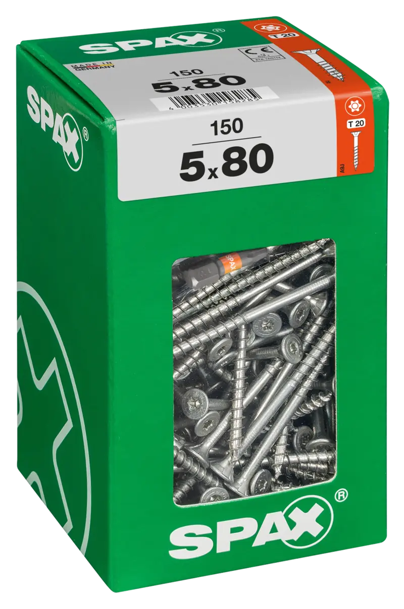 Die Universalschraube ist der absolute Allrounder im Sortiment von SPAX. Sie kann fast alles – zum Beispiel ganz ohne Vorbohren in Nadelhölzer wie Fichten- und Kiefernholz sowie in die gängigen Holzwerkstoffplatten (MDF, Span- und OSB-Platten) eingedreht werden. Dabei spielt unsere Universalschraube ihre Überlegenheit vor allem im Innenausbau- und Möbelbaubereich aus, aber auch außen ist sie mit dem passenden Korrosionsschutz gut verwendbar. Durch ihre besondere Gewindegeometrie ist der Eindrehwiderstand beim Schrauben wesentlich geringer als bei herkömmlichen Schrauben, was nicht nur Ihre Kräfte und Nerven, sondern auch den Akku des eingesetzten Schraubers schont. Ein Aufspleißen des Holzes in Randnähe wird zuverlässig unterbunden. Das bedeutet für Sie: Sie drehen mehr Schrauben pro Akkuladung ein, und Sie müssen sich keine Sorgen um aufgerissene Holzenden mehr machen.