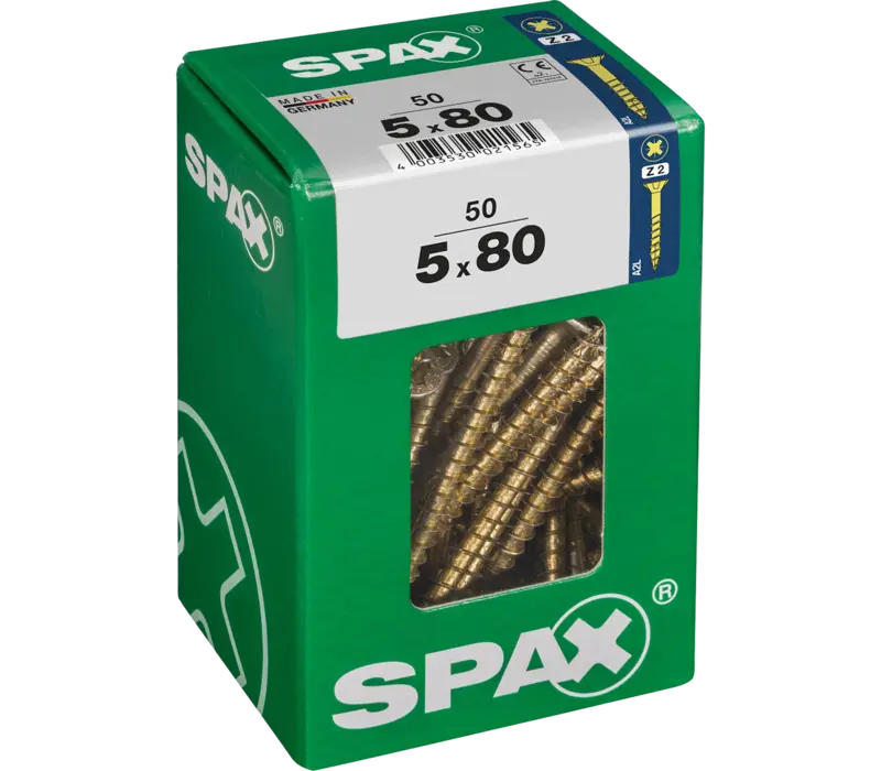 SPAX Universalschraube, 5 x 80 mm, 50 Stück, Teilgewinde, Senkkopf, Kreuzschlitz Z2, 4CUT, YELLOX, 4081020500807