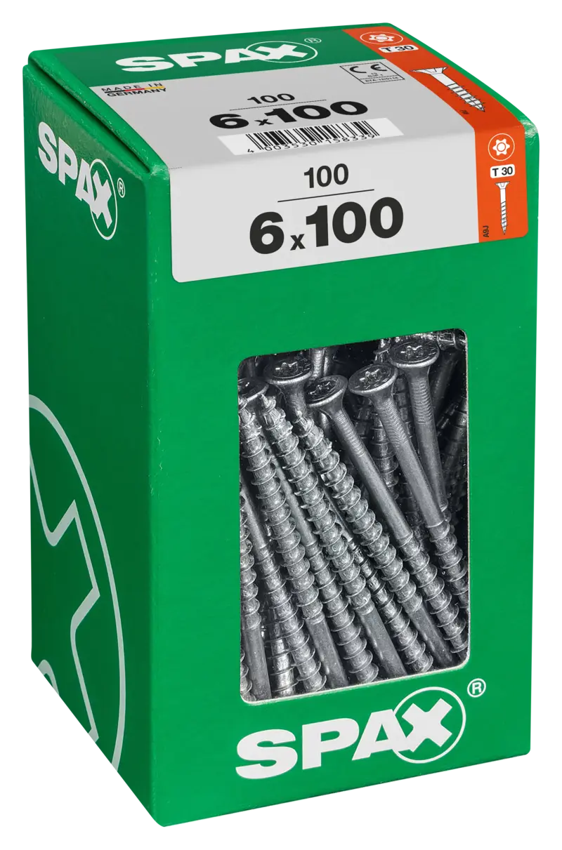 SPAX Universalschraube, 6 x 100 mm, 100 Stück, Teilgewinde, Senkkopf, T-STAR plus T30, 4CUT, WIROX, 4191010601006