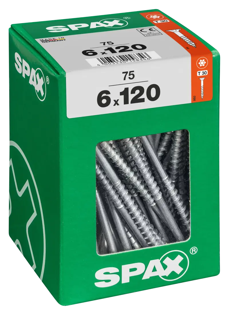 SPAX Universalschraube, 6 x 120 mm, 75 Stück, Teilgewinde, Senkkopf, T-STAR plus T30, 4CUT, WIROX, 4191010601206