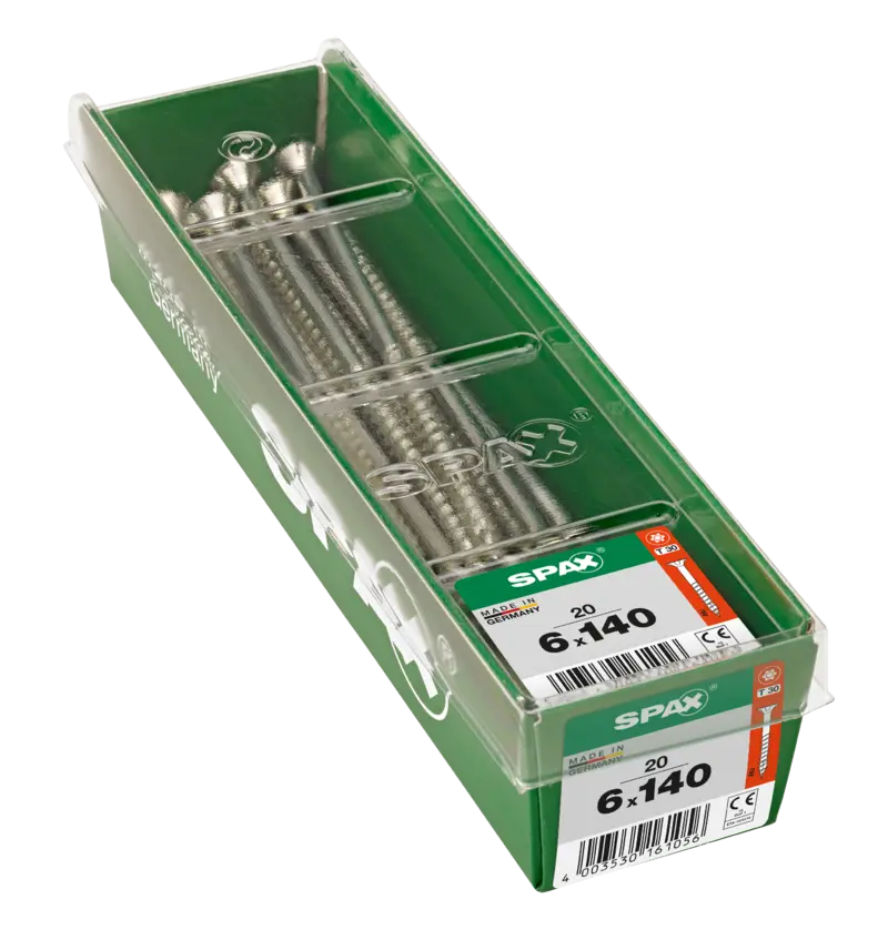 SPAX Universalschraube, 6 x 140 mm, 20 Stück, Teilgewinde, Senkkopf, T-STAR plus T30, 4CUT, WIROX, 4191010601412