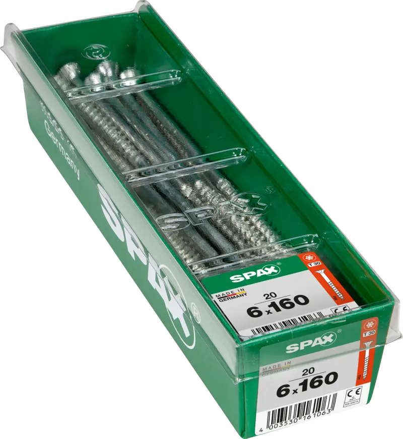 SPAX Universalschraube, 6 x 160 mm, 20 Stück, Teilgewinde, Senkkopf, T-STAR plus T30, 4CUT, WIROX, 4191010601612