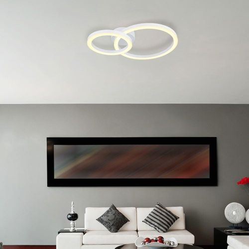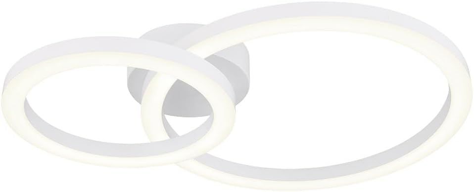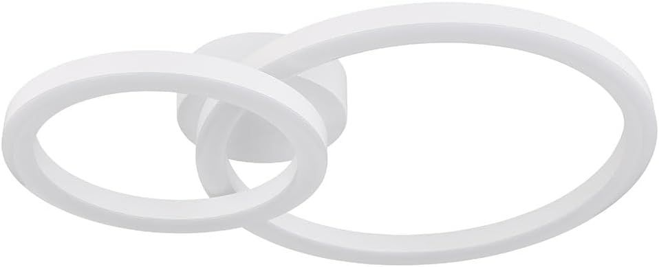 Die Deckenleuchte besteht aus Metall in weiß matt und Kunststoff in weiß matt und opal. Sie hat eine Abmessung von LxBxH: 420x300x70mm und einen Ring-Durchmesser von 1 x 20 cm und 1 x 30 cm. Die Leuchte hat eine LED mit einer Leistung von 15W und einer Spannung von 230V, die eine Lichtquelle von 1750lm Source und 980lm Output bei einer Farbtemperatur von 3000K bietet. Wir hoffen, dass Sie mit dieser Deckenleuchte zufrieden sein werden.