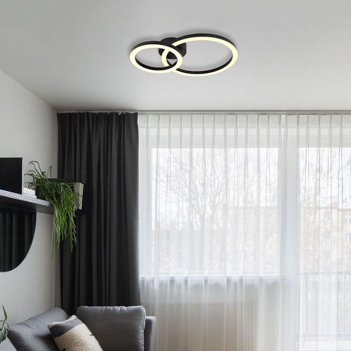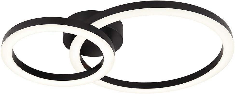 Die Deckenleuchte besteht aus Metall in schwarz matt und Kunststoff in schwarz matt und opal. Sie hat eine Abmessung von LxBxH: 420x300x70mm und einen Ring-Durchmesser von 1 x 20 cm und 1 x 30 cm. Die Leuchte hat eine LED mit einer Leistung von 15W und einer Spannung von 230V, die eine Lichtquelle von 1750lm Source und 820lm Output bei einer Farbtemperatur von 3000K bietet. Wir hoffen, dass Sie mit dieser Deckenleuchte zufrieden sein werden.