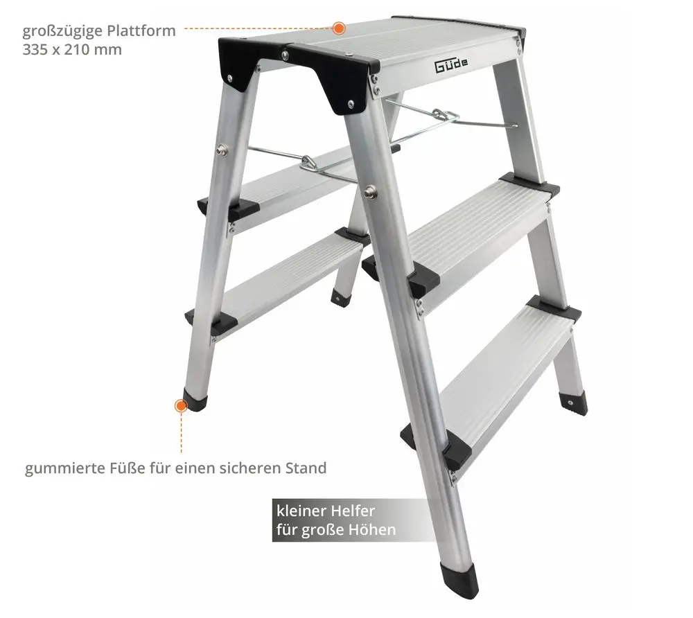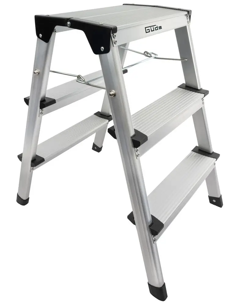 Praktisch zusammenklappbare Trittleiter für alle Fälle. Egal ob auf dem Bau oder im Haushalt - dieser leichte, aus Aluminium gefertigte Tritt ist der perfekte Helfer beim Montieren, Renovieren oder Dekorieren.