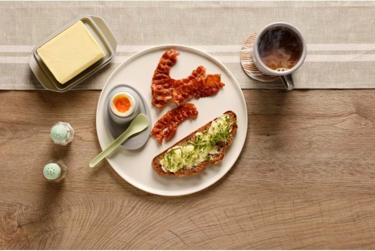 Die nachhaltige Butterdose Eco von Fackelmann ist im Kühlschrank unverzichtbar! Die zweiteilige Dose "Made in Germany" ist aus biobasiertem Green PE-Kunststoff hergestellt. Dieser Kunststoff besteht überwiegend aus nachwachsenden Rohstoffen. Der steingraue Boden bietet großzügig Platz für eine 250g-Butterpackung und verfügt über zwei praktische Halterungen für das sichere Herausnehmen aus dem Kühlschrank. Der hohe mintgrüne Deckel umschließt den Boden und sorgt dafür, dass die Butter Frische und Geschmack behält. Bei Bedarf kann die Dose (ca. 16,5 x 10,5 cm) zur Reinigung in die Spülmaschine gegeben werden.