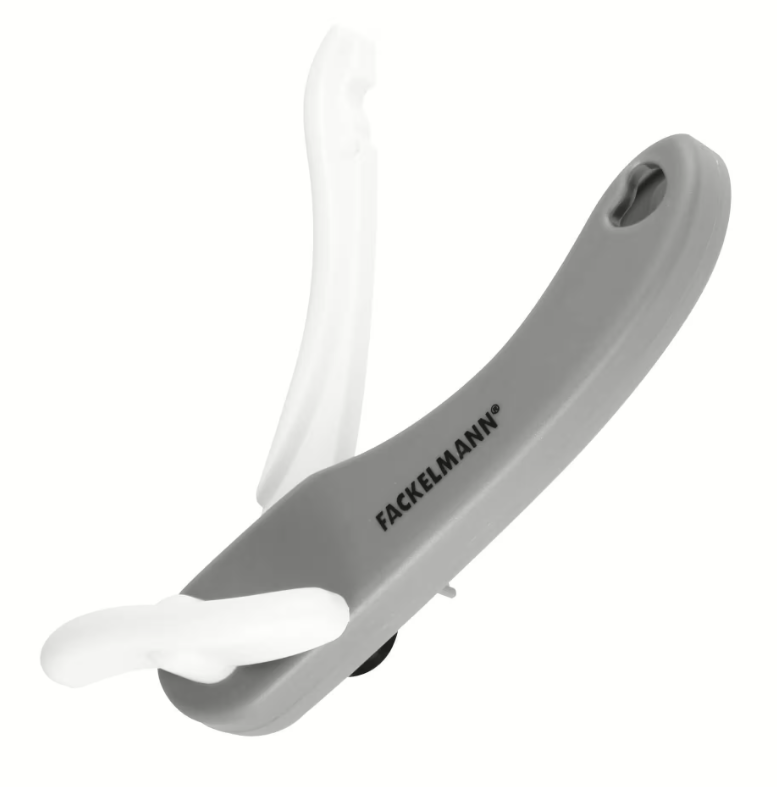 Der praktische Dosenöffner von Fackelmann öffnet Konservendosen im Handumdrehen und mit geringem Kraftaufwand. Dabei durchdringt das extra scharfe Schneidrad des Edelstahl-Funktionsteils mühelos den Deckel und schneidet diesen auf, während der Klappgriff zur Fixierung am Dosenrand dient. Aufgrund der Hebelwirkung des Drehknopfes ist hierfür kaum Kraftaufwand nötig. Der Küchenhelfer (ca. 15 cm) mit grau-weißem Kunststoff-Griff liegt angenehm in der Hand, zudem lässt er sich bequem in der Spülmaschine reinigen und anschließend platzsparend verstauen. Beim Kochen kommen oft konservierte Lebensmittel zum Einsatz. Obst und Gemüse, aber auch Hülsenfrüchte bleiben in Konservendosen lange haltbar, zudem werden das Aroma und ein großer Teil der Vitamine und Nährstoffe bewahrt. Mit dem Dosenöffner von Fackelmann öffnest du große und kleine Konserven mit Lebensmitteln, Fertiggerichten oder auch Tiernahrung im Handumdrehen und ohne Kraftanstrengung.