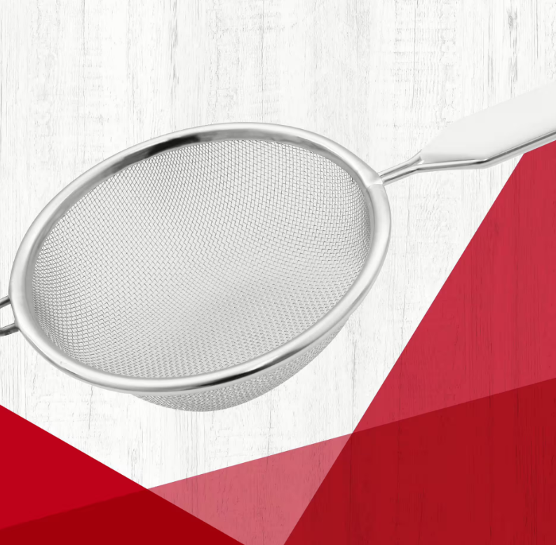 - Küchensieb aus hochwertigem rostfreiem Edelstahl mit angenehmem Kunststoffgriff in Weiß – Maße Ø 10 x 23 cm