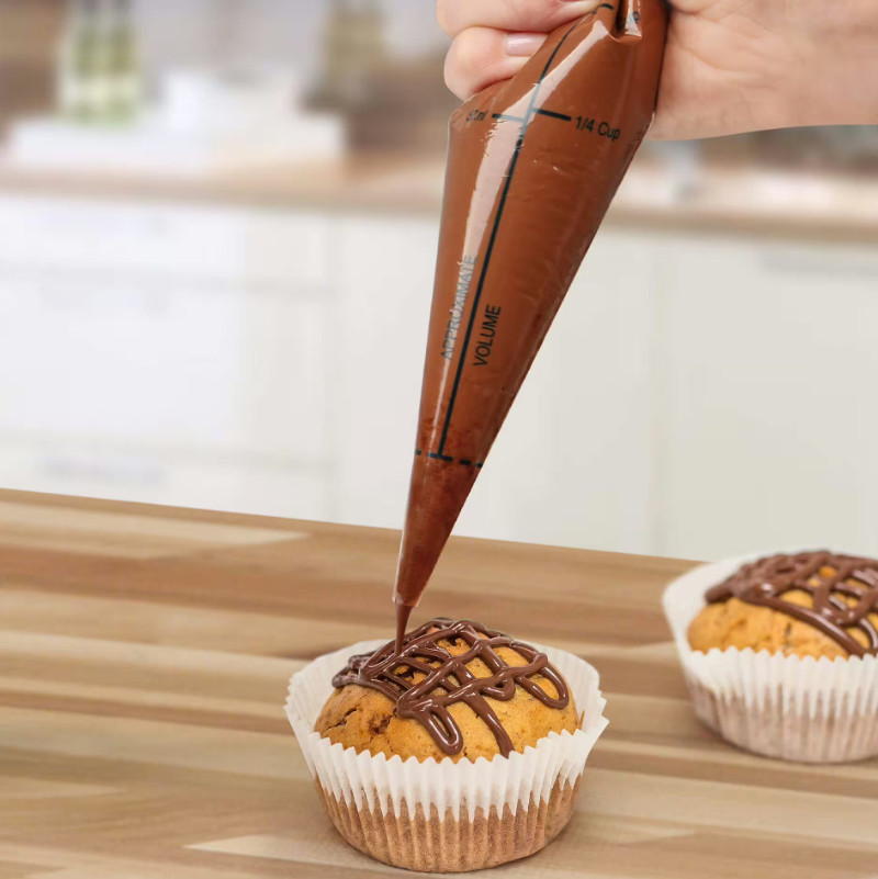 - Schmelzspritzbeutel für das Schmelzen von Schokolade im Wasserbad oder der Mikrowelle