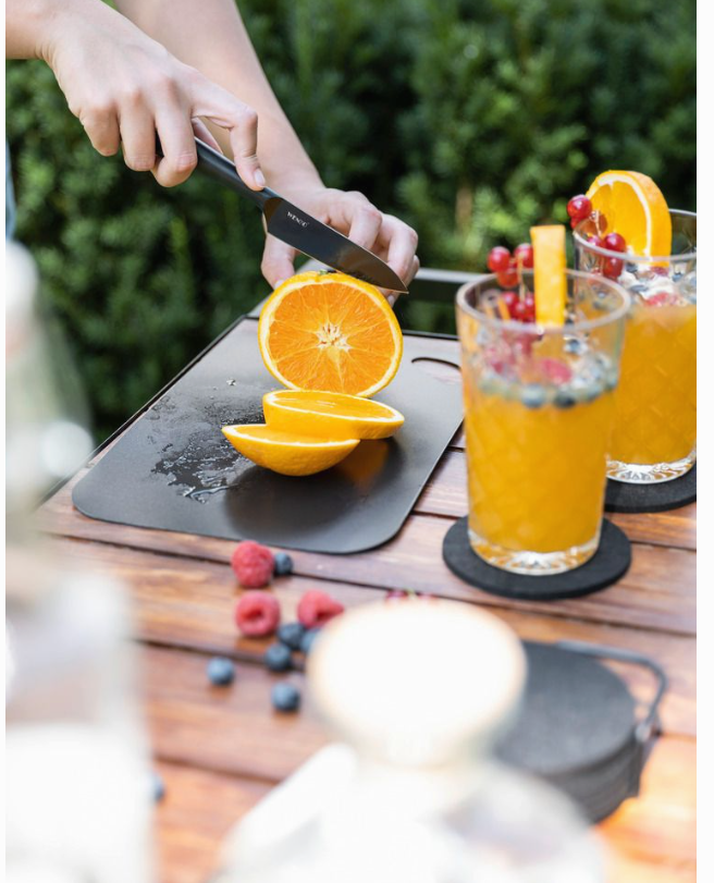 BLACK OUTDOOR KITCHEN by WENKO – das sind die cleveren Produkte, die in Ihrer Outdoorküche für BBQ, Brunch und Grillevent nicht fehlen dürfen. Das Gemüsemesser Ace ist nichts fürs Grobe – nutzen Sie die kleine, schmale Klinge, um Zutaten besonders präzise zuzubereiten oder um Gemüse wie Karotten, Radieschen oder Tomaten hübsch und dekorativ zum Anrichten auf dem Teller zuzuschneiden. Dank des ergonomischen Griffs ist es leicht in der Handhabung und eine praktische Bereicherung für Ihre Küche oder den nächsten Grillabend. Durch die Fertigung aus rostfreiem Edelstahl ist das Messer besonders robust und sowohl für die Innen- als auch für die Außenküche geeignet. Die Antihaft-Beschichtung verhindert lästiges Ankleben der Lebensmittel und sorgt für sauberes, effektives Schneiden mit der Klinge (Länge: 9,5 cm). Das Messer ist nicht nur ein zuverlässiger Helfer im Umgang mit Lebensmitteln, sondern auch optisch ein echtes Highlight. Das minimalistische Design in Schwarz ist eine abwechslungsreiche Alternative zu gängigen Küchenmessern und -utensilien in Silber-Grau. Mit den Utensilien der Reihe Black Outdoor Kitchen gibt WENKO Ihnen das rundum Paket an Koch-, Grill- und Küchenhelfern an die Hand, die Ihre Außenküche noch funktionaler macht. Von der mühelosen Zubereitung und Vorbereiten der Lebensmittel für den Grill, dem einfachen Transport von Gewürzen, Schalen und Schüsseln, dem ansprechenden Servieren der Speisen, nützlichen Helfern und der angenehmen Reinigung ist alles dabei. Ein besonderer Vorteil: die Auswahl der Artikel der Reihe ergänzen sich wunderbar – probieren Sie es aus und statten Sie Ihre Außenküche mit den Black Outdoor Kitchen Artikeln von WENKO aus!
