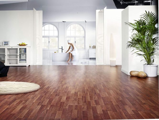 - emsal Parkett pur auf ein feuchtes, fusselfreies Baumwolltuch geben und abschnittsweise gleichmäßig auf dem Boden verteilen.