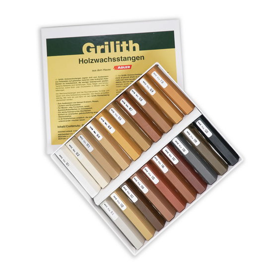 Zum Ausbessern von Fehlstellen auf gebeizten, lasierten oder lackierten Holzflächen im Innenbereich, die weniger beansprucht werden. Die Weichwachsstangen sind bei Raumtemperatur formbar und lassen sich ohne Vorbereitung anwenden. Das Wachs ist lichtbeständig, fällt nicht ein und kann mit dem Grilith Klarlackspray überlackiert werden.