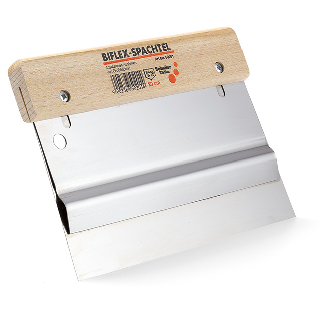Biflexspachtel mit einem bombierten Fingerblech zum Einstellen der Flexibilität, rostfrei