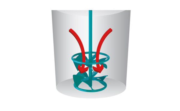 Der Turbo unter den Rührern. Starker Strömungsaufbau von oben nach unten. Ideal für alle flüssigen und fließenden Materialien.