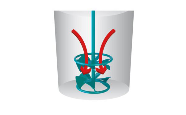 Der Turbo unter den Rührern. Starker Strömungsaufbau von oben nach unten. Ideal für alle flüssigen und fließenden Materialien.
