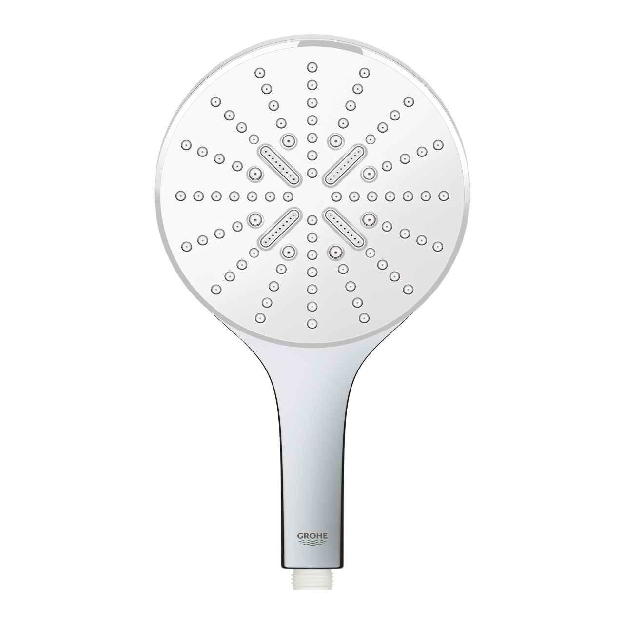 Mit dem 150 mm breiten Brauseboden in Moon White und der eleganten Form sieht die GROHE Vitalio SmartActive Handbrause nicht nur gut aus, sie ist auch ein echtes Kraftpaket. Hergestellt in Deutschland und vollgepackt mit innovativer Technologie: Eine wahre Freude in der Anwendung! Mit GROHE SmartTip – einer ergonomischen Steuerung auf der Rückseite des Griffs – stellen Sie die Strahlbilder per Fingerdruck ein. Ob pulsierender GROHE ActiveMassage Strahl für ein belebendes Massageerlebnis, belebenden Jet Strahl oder Rain Strahl, der so sanft ist wie ein warmer Sommerregen: Sie haben die Wahl. Sobald das Wasser abgestellt wird, reduziert die GROHE DripStop Funktion lästiges Nachtropfen nach der Verwendung von Rain und Jet Strahl. Die GROHE DreamSpray Technologie sorgt dafür, dass Sie bei jedem Strahlbild von einem gleichmäßigen Wasserfluss aus jeder einzelnen Düse profitieren. Das garantiert höchsten Duschgenuss. Dazu sind die SpeedClean Antikalk-Düsen besonders leicht zu reinigen. Die GROHE Long-Life Finish Chromoberfläche ist robust und pflegeleicht – für langlebigen Glanz. Dazu spart die Handbrause auch Wasser: Der Durchflussbegrenzer der GROHE Wasserspartechnologie reduziert Ihren Wasserverbrauch um bis zu 40 % (9,5 l/min) – ganz ohne Abstriche bei der Leistung. Werkzeuge werden nicht gebraucht – die Installation geht überraschend einfach! Dank dem universalen Montagesystem passt die Handbrause an alle Standard-Brauseschläuche: Einfach anschrauben und Losduschen. Und wenn Sie ein wenig Hilfe benötigen, können Sie jederzeit unser QuickVideo ansehen oder einen Blick in den QuickGuide werfen.