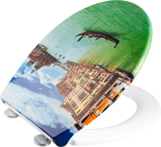 WC-Sitz BENVENUTO Duroplast, Form: Oval, Absenkautomatik, Rostfreie Edelstahlbefestigung, Top Fix Komfortmontage, Zur Reinigung einfach abnehmbar, Gewicht mit Scharnier: 2,3 kg, Belastbar bis ca. 300 kg, Farbe: Dekor