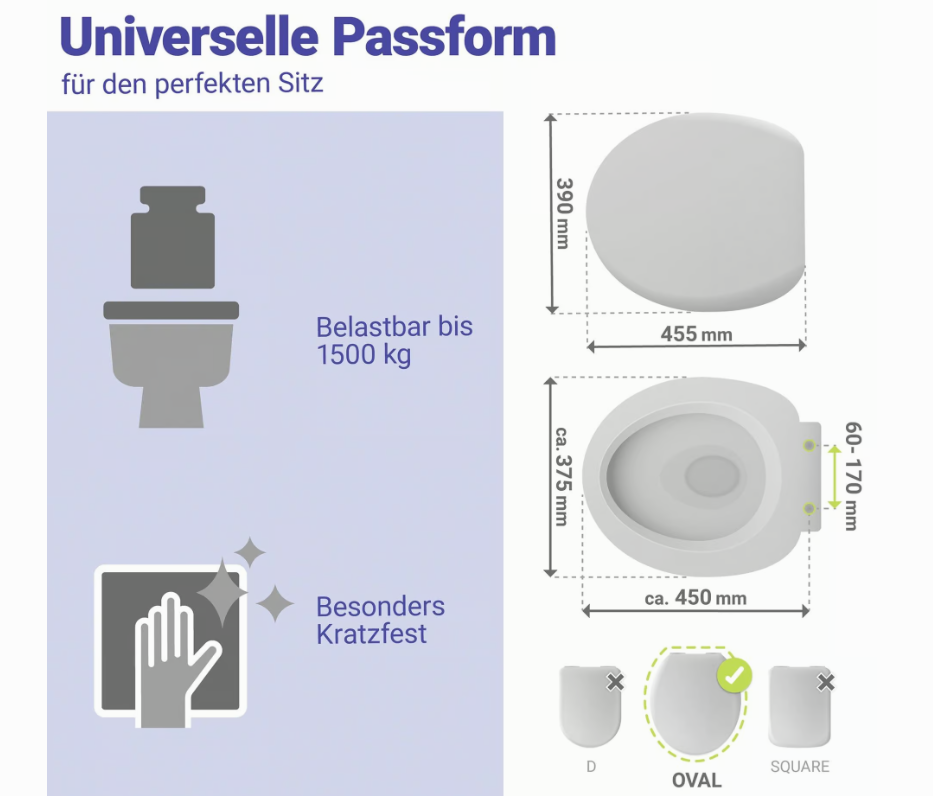 - Easy-Close Absenkautomatik für leises, sanftes Schließen des Toilettendeckels ohne Geräusche