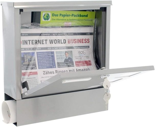 Mit dem Lago Inox bekommen Sie einen modernen Edelstahlbriefkasten, der Ihnen lange Freude bereiten wird. Der Posteinwurf erfolgt von oben und aufgrund der drei Sichtfenster sehen Sie auf einen Blick, ob Sie Post erhalten haben und müssen den Briefkasten deshalb zum Nachschauen nicht extra öffnen. Die Schutzklappe schützt Ihre Post vor Fremdzugriff. Durch das Namensschild weiß der Briefträger/Zusteller sofort, ob er auch an der richtigen Adresse ist. Perfekt wird der Lago Inox durch die schlichte Zeitungsrolle, die optimale Ergänzung zum Briefkasten. Zylinderschloss inkl. 2 Schlüssel und Montagematerial sind inkl.