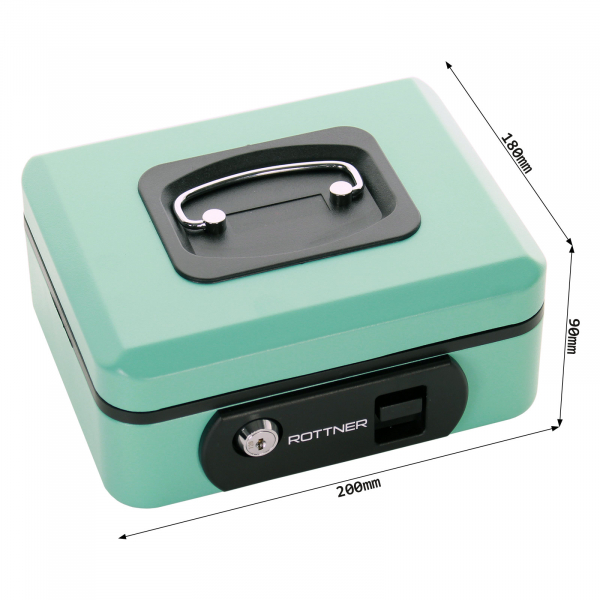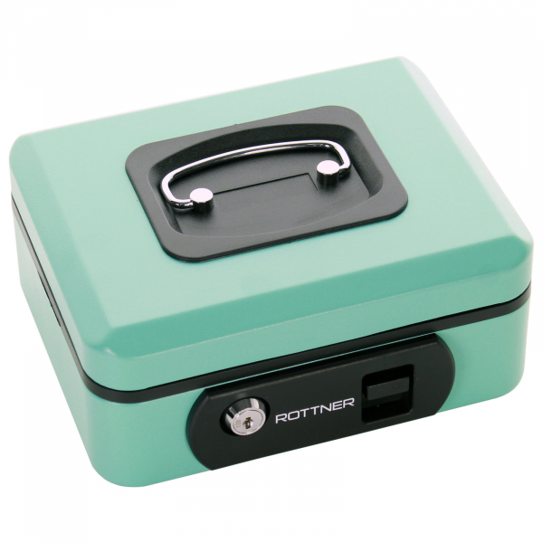 Die moderne Geldkassette Pro Box One in der Trendfarbe Türkis überzeugt auf der ganzen Linie. Hauptverwendungszweck ist das ordentliche und übersichtliche Aufbewahren von Geldscheinen und Münzen im Geldeinsatz. Wenn Sie diesen entfernen, kommt ein Kunststoffboden zum Vorschein. Schmuck oder kleine Wertgegenstände können somit ebenfalls in der hübschen Box aufbewahrt werden. Auf der Oberseite befindet sich ein versenkbarer Griff, mit dem die Geldkassette leicht transportiert werden kann. Bei einfachem Knopfdruck öffnet sich die Kassette automatisch.