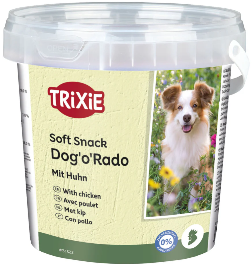 Getreide, pflanzliche Nebenerzeugnisse, Fleisch und tierische Nebenerzeugnisse (davon 4 % Huhn), Öle und Fette, pflanzliche Eiweißextrakte, Propylenglycol | 0 % Zuckerzusatz | Kühl und trocken lagern.
