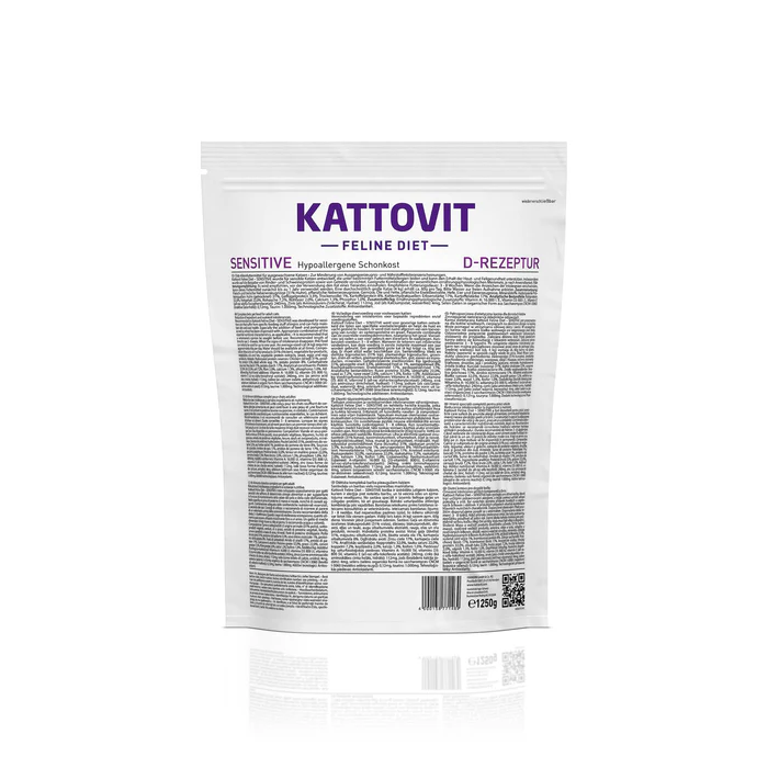 KATTOVIT Trockenfutter Sensitive ist optimal für Katzen mit Futtermittelunverträglichkeiten oder empfindlicher Verdauung. Die Rezeptur enthält nur ausgewählte, leicht verdauliche Zutaten und eine Single-Protein-Quelle, um allergische Reaktionen zu minimieren. Gleichzeitig liefert es alle wichtigen Nährstoffe für Vitalität und Wohlbefinden.