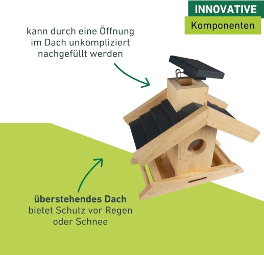 - HOCHWERTIGES VOGELFUTTERSILO – Witterungsbeständiges Silo aus FSC zertifiziertem Kiefernholz