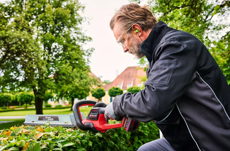 Die Einhell Professional Akku-Heckenschere GP-CH 18/50 Li BL-Solo ist ein unverzichtbarer, leistungsstarker Helfer im Garten. Als Teil der Einhell Power X-Change-Familie wird sie von einem leistungsstarken 18 V Lithium-Ionen-Akku mit Energie versorgt und kann so kabellos flexibel eingesetzt werden. Angetrieben wird das Gerät von einem Einhell Brushless Motor. Dieser bürstenlose Motor bietet mehr Kraft und eine längere Laufzeit als herkömmliche Kohlebürsten-Motoren. Nach einer Online-Registrierung gelten 10 Jahre Garantie auf den Brushless-Motor. Dank ihres geringen Gewichts von 2,6 kg liegt die handliche Heckenschere bequem in der Hand. Der schmale Frontgriff mit Mikroschalter ermöglicht ein präzises Formen und Schneiden von Hecken und Büschen. Das langlebige Metallgetriebe optimiert die Übertragung der Akku-Power auf die lasergeschnittenen und diamantgeschliffenen Messer aus Stahl mit einer Schnittlänge von 50 cm und einem Zahnabstand von 20 mm. Die Schwertlänge beträgt dabei 56 cm. Damit können auch mittelgroße bis große Hecken optimal geschnitten werden. Für noch bessere Schnittergebnisse sorgt die Geschwindigkeitsregelung in zwei Stufen: der ECO-Modus ermöglicht eine längere Akkulaufzeit, während der MAX POWER-Modus für eine maximale Schnittgeschwindigkeit von bis zu 3060 Schnitten pro Minute sorgt, um auch dicke Äste problemlos zu schneiden. Das Anti-Blockier-System und der Handschutz sorgen für hohe Sicherheit bei der Arbeit. Schnelles Abtragen des Schnittguts wird durch den abnehmbaren Schnittgutsammler ermöglicht. Der integrierte Stoßschutz und die Alu-Messerabdeckung schützen die Qualitätsmesser und für den sicheren Transport und die Aufbewahrung wird ein stabiler Köcher mitgeliefert. Geliefert wird die Einhell Professional Akku-Heckenschere GP-CH 18/50 Li BL-Solo ohne Akku und ohne Ladegerät. Diese sind separat erhältlich.