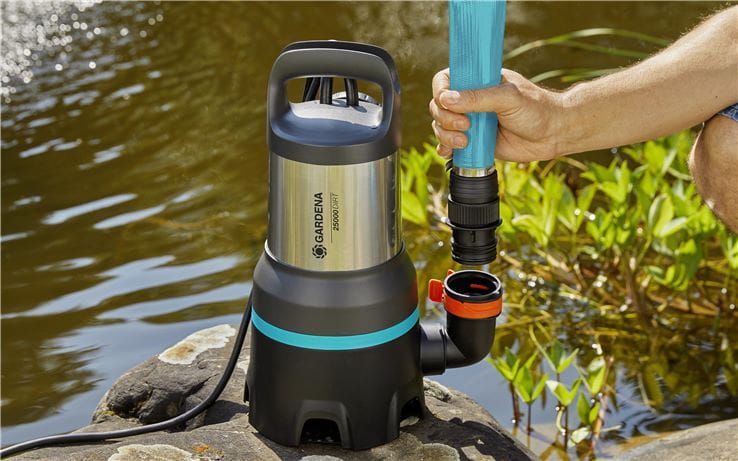 GARDENA präsentiert Dir mit der Klar-/Schmutzwasser-Tauchpumpe 19500 Aquasensor eine neue Generation von Tauchpumpen mit hoher Leistung bei geringem Energieverbrauch. Ob Du Deinen Gartenteich auspumpen und reinigen möchtest, eine von Niederschlägen überflutete Baugrube entleeren oder Deinen Wäschekeller nach einem Rohrbruch von Wasser befreien musst – mit dieser innovativen Kombipumpe kannst Du sowohl klares als auch verschmutztes Wasser mühelos aus- und umpumpen. Ihr Motor leistet 860 W und bietet damit ein beeindruckendes Pumpvolumen von 19500 Litern Wasser in der Stunde. Mit einem Druck von 1,0 bar und einer maximalen Förderhöhe von 10 m ist die stilvolle 2in1-Pumpe mit Edelstahlelementen besonders effizient. Die Flachabsaugung des Klarwasser-Modus kann klares oder nur leicht verschmutztes Wasser bis auf 1 mm absaugen, sodass zum Beispiel ein Kellerraum im Anschluss ganz einfach trockengewischt werden kann. Bei Wasser mit Schmutzpartikeln von bis zu 35 mm wird die Kombi-Tauchpumpe durch ein Umschalten des Betriebsmodus zur Schmutzwasser-Tauchpumpe. Diese ist zum Beispiel ideal für die Entwässerung einer vollgelaufenen Baugrube mit groben Schmutzpartikeln im Wasser. Der Wechsel zwischen dem Klar- und Schmutzwassermodus direkt am praktischen Tragegriff ist hier so bequem und leicht, dass Deine Hände und Schuhe beim Umstellen sauber und trocken bleiben. Das keramisch beschichtete Wellensystem verfügt über eine dreifache Abdichtung für zusätzliche Langlebigkeit. Ein weiteres innovatives Highlight der Pumpe ist der LED-Aquasensor, mit dem der gewünschte Wasserstand kontrolliert und justiert werden kann. Der Aquasensor ermöglicht es der Kombipumpe, in engen Schächten zu arbeiten, und bietet präzise einstellbare Ein- und Ausschalthöhen. Das Wasser kann ohne direkten Kontakt mit der Sensorik gemessen und über praktische LEDs auf dem Gerät angezeigt werden. Darüber hinaus bietet der Aquasensor eine intuitive Touch-Bedienung, einen Trockenlaufschutz, eine Verschmutzungsüberwachung sowie eine 10-Minuten-Timerfunktion. Genauso hilfreich ist das Easy-Click-Schlauchanschlusssystem. Schläuche mit einem Durchmesser von 32 mm (1 ¼"), 38 mm (1 ½") und 50 mm (2") können mit nur einem Klick angeschlossen werden. Der Anschluss mit einem optionalen G1 ½"-Gewinde ermöglicht ein breites Spektrum an Anschlussmöglichkeiten. So besticht diese tauchfähige Klar-/Schmutzwasserpumpe nicht nur durch ihr Aussehen, sondern vor allem durch ihre Funktionalität und ist damit ideal für alle Haus- und Gartenbesitzer mit hohen Ansprüchen. Verlasse Dich auf die mehr als 40-jährige Erfahrung von GARDENA in den Bereichen Entwässerung, Bewässerung und Hauswasserversorgung. Nach der Online-Registrierung erhältst Du zudem eine verlängerte Garantie von 5 Jahren auf dieses Produkt. Spür die Kraft einer Pumpe von GARDENA!