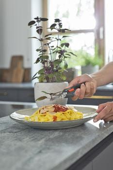 Der integrierte Greifer der GripCut erlaubt das gleichzeitige Schneiden und Halten mit nur einer Hand. So ist zum Beispiel das Abschneiden und Festhalten von Petersilie möglich und eine Hand ist immer frei für ein Sieb oder eine Schüssel. Zum Reinigen kann der Greifer einfach abgenommen werden. - Sicher und griffig in der Bedienung
