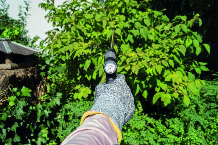 Der Kunststoff-Behälter mit 5 l Füllinhalt (Gesamtinhalt 8 l) ist mit einem Standfuß ausgestattet, wodurch der Behälter auch bei geringer Befüllung oder unebenem Untergrund sicher steht; zusätzlich schützt der Standfuß die Verbindung zwischen Schlauch und Behälter vor Beschädigung. Das 40 cm lange, um 360° drehbare Messingspritzrohr verfügt über eine Hohlkegeldüse mit 1,1mm Bohrung aus Messing. Der auf 250 cm Länge ausziehbare Spiralschlauch ist platzsparend und ermöglicht dem Anwender einen großen Aktionsradius. Das ergonomische Abstellventil mit integriertem Zeigermanometer unterstützt den umweltschonenden und wirtschaftlichen Mitteleinsatz und ermöglicht komfortables, ermüdungsfreies Arbeiten; der integrierte, professionelle Filter bewahrt die Düse vor Verschmutzung. Der integrierte Einfülltrichter ermöglicht ein bequemes Befüllen des Gerätes, Spritz- und Verlängerungsrohre können optimal am Gerät verstaut werden und das Kolbenmanometer mit eingebautem Sicherheitsventil runden die Ausstattung des Modells 3275M ab.