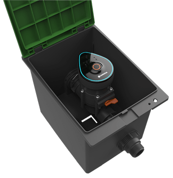 Das Bewässerungsventil 9 V bietet einen Schalthebel für den automatischen Betrieb oder manuelles Schließen und lässt sich dank 1"-Innengewinde-Anschlüssen einfach in das Rohrsystem oder – noch bequemer – in eine GARDENA Ventilbox installieren. - Kabellos gesteuert