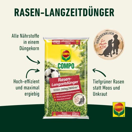 Compo Rasen-Langzeitdünger 20kg für 800m², 3 Monate LZ-Wirkung 26632