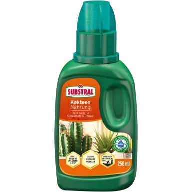 SUBSTRAL® Kakteen Nahrung ist ein hochwertiger Flüssigdünger mit natürlichen Biostimulanzien, der Ihre Pflanzen mit allen wichtigen Haupt- und Spurennährstoffen versorgt. Er sichert eingesundes Wachstum und stärkt gleichzeitig die Widerstandskraft bei Trockenheit oder schlechten Bodenbedingungen.