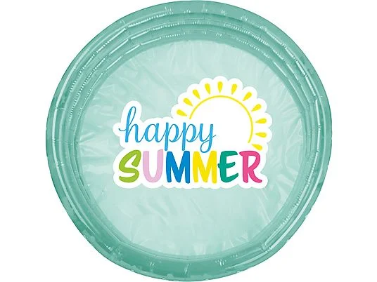 Dieses bunte Happy People Happy Summer Pool Planschbecken bietet erfrischenden Wasserspaß für Kinder an warmen Sommertagen. Mit einem Durchmesser von ca. 122 cm und einer Höhe von ca. 23 cm entsteht eine flache Wasserfläche, die sich ideal für kleine Planscher eignet und zum gemeinsamen Spielen einlädt. Drei robuste Ringe sorgen für Stabilität und machen den Aufbau einfach und schnell.
